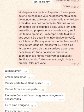 El propio Endrick contestó a su pareja por el mismo canal: “Hola mi amor. Amén, mi amor. Será perfecto si Dios quiere. Vamos a hacer nuestra parte Y el resto Dios hará un gran milagro en nuestras vidas. Te amo, gracias Por estar conmigo”.