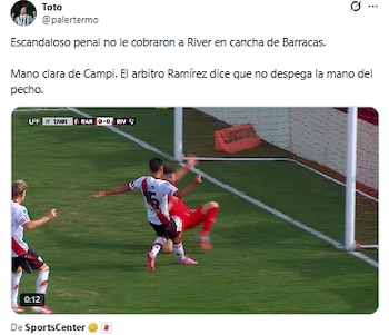 La acción más discutida del partido ocurrió recién iniciado el segundo cuarto de hora del primer tiempo por un avance concluido por Fausto Vera en el área chica y un despeje de Gastón Campi con el brazo extendido. Inmediatamente, los futbolistas del Millonario rodearon a Ramírez para exigir el cobro de la pena máxima y los usuarios calificaron la jugada como un “robo” o un “escándalo”, luego de que el juez haya dado continuidad al juego. El árbitro principal, respaldado desde la herramienta tecnológica, aseguró que había sido una mano casual y dio la orden de continuar el trámite.