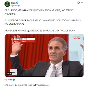 Más tarde, las molestias físicas de Nicolás Ramírez, quien se dobló el tobillo por un choque involuntario con un hombre del anfitrión, fueron eje de comentarios en redes, como así también una intervención que terminó con las quejas de Facundo Colidio por tener la camiseta rota producto de los forcejeos con los jugadores de Barracas Central.
