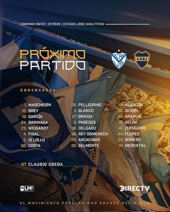 LA LISTA DE CONVOCADOS DE BOCA JUNIORS ANTE VÉLEZ