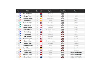 Mientras que séptimo se ubicó Alonso, en una buena labor con el renovado AMR23 de la escudería británica que pegó un salto de calidad en este arranque de temporada. De hecho en la vuelta 13ª el español dio cuenta de Russell y quedó quinto.