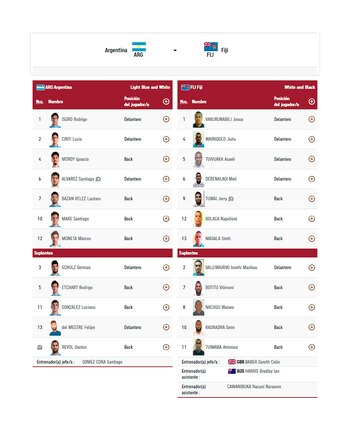 Sin embargo, el equipo de Santiago Gómez Cora tuvo dos bajas para su compromiso contra el elenco isleño, dado que no pudo contar con Gastón Revol, quien fue sancionado con 4 partidos por la infracción que le cometió a Selvyn Davidsel (tackle alto) frente a Los Springboks y Matías Osadczuk, quien sufrió una lesión ligamentaria en la rodilla izquierda y también se despidió de los Juegos Olímpicos.