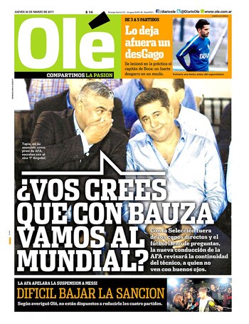 Olé, jueves 30 de marzo de 2017