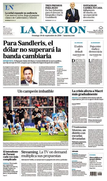 LA NACIÓN, domingo 30 de septiembre de 2018