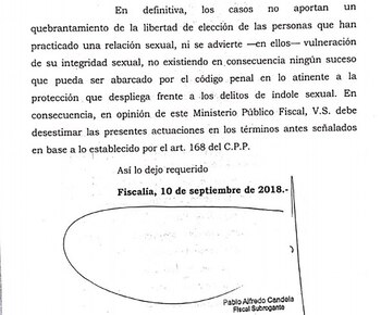 Dictamen del fiscal Candela donde afirma que no hubo delito de índole sexual