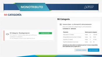 A modo de instructivo, el organismo diseñó en su página de internet para esta categoría de contribuyente una "ventana" en la que cada uno de los inscriptos podrá ver "los datos que tiene la AFIP de la última declaración", para que los confirme o se recategorice.