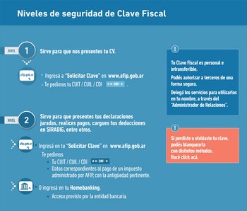 La AFIP elaboró el siguiente instructivo guía para que tengan presente los contribuyentes, según sus necesidades en materia tributaria, sobre niveles de seguridad de la clave fiscal que necesitan para operar.