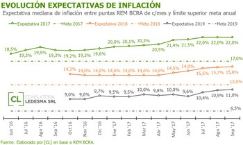 Lo cierto es que el Relevamiento de Expectativas de Mercado (REM) que publica todos los meses la entidad demuestra que las expectativas están desancladas. Un informe de la consultora económica Ledesma con esos datos considera que las proyecciones de 55 analistas evidencian que "las expectativas no están ancladas hace meses". Y hacia delante, estarían desancladas también en 2018 y 2019.