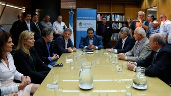 En la firma del anuncio realizado en el ministerio de Trabajo estuvieron presentes el dueño de casa, Jorge Triaca, el ministro de la Producción, Francisco Cabrera, y el de Agroindustria, Ricardo Buryaille.
