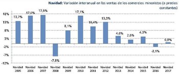 El aumento de ventas de 0,8% 2017 fue muy inferior al crecimiento de 2,1% observado en la Navidad de 2016 respecto de la de 2015.