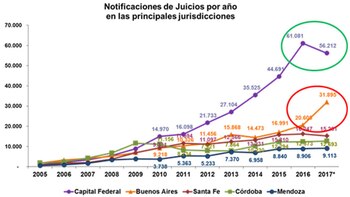 Este crecimiento en la provincia y la baja en la Ciudad hizo que durante noviembre y por primera vez desde 2008, CABA tuviera menor cantidad de juicios (3.314) que PBA (3.613), siendo que históricamente la primera concentraba el 50% del total y la segunda 16%. Se estima que con la aprobación de la legislatura de Buenos Aires en la segunda semana de diciembre esas proporciones vuelvan a modificarse.