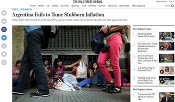 Bajo el título "Argentina fracasa en domar domar una obstinada inflación", la publicación económica norteamericana The Wall Street Journal (WSJ) advirtió sobre las dificultades del Gobierno para reducir un alza de precios minoristas que promedió 24,8% en 2017.