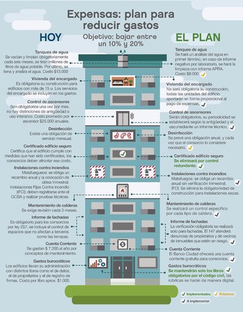 Recientemente, la Ciudad de Buenos Aires anunció una serie de medidas para disminuir el gasto mensual que tienen propietarios e inquilinos. Una vez aplicadas estas iniciativas, estiman las autoridades que a fin de año el vecino que vive en un edificio de 10 pisos podrá ahorrar 4.900 pesos por año de expensas.