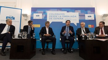 El ministro de Finanzas compartió el estrado con dos de las empresas que aterrizaron en la Argentina en la década del 90 y siguen en el país, Martín Zarich, presidente de BBVA Francés y Horacio Cristiani, presidente de Gas Natural. Habían sido convocados por el director de ABC, Bieito Rubido, quien junto a la embajada española convocó al foro "Invertir en Argentina: el desafío de la confianza".