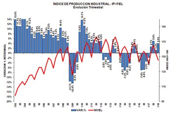 En el primer trimestre de 2018, y en la comparación interanual, la actividad industrial mostró una mejora de 3,9%, mientras que en relación al cuarto trimestre de 2017 la producción corregida por estacionalidad avanzó 3,5 por ciento.