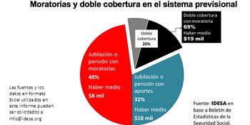 El informe de IDESA enfatizó que hay un 20% de pasivos que percibe doble beneficio, cobro que al que la mayoría accedió a través de las moratorias. "Se trata de una estimación de mínima ya que estas estadísticas no computan los pensionados de otros sistemas previsionales (como provincias, militares, fuerzas de seguridad, etc.) que aprovecharon las moratorias para solicitar jubilaciones sin aportes a la ANSeS", detalló el estudio.