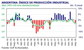 Además, destacan los analistas el efecto de "la desaceleración registrada en el ritmo de aumento de la producción automotriz, la cual creció solamente 3,5% en relación a mayo de 2017, contrastando con lo exhibido en el primer trimestre del año en curso del 20 por ciento".