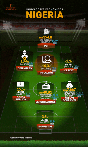 A nivel futbolístico, Argentina y Nigeria se cruzaron en los dos últimos Mundiales, y un seleccionado nigeriano fue parte del grupo en el que la Argentina fue eliminada en 2002 durante la fase inicial. A nivel económico, la historia es otra, con una importante distancia entre ambos países.