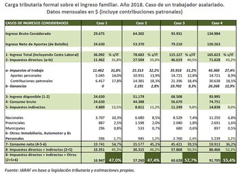 Siguiendo esos parámetros, el "Día de la independencia tributaria" se determina en función de los ingresos familiares: "se toman cuatro casos de ingresos hipotéticos, para una familia compuesta por un matrimonio y dos hijos, y cuyos ingresos son generados por un solo miembro que se desempeña como trabajador asalariado en el sector formal de la economía".