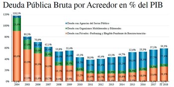Por otro lado, la deuda considerada "relevante" o "neta", es decir, aquella sujeta a refinanciación por haber sido contraída con acreedores privados y organismos multilaterales y bilaterales, representa el restante 53,8 por ciento.