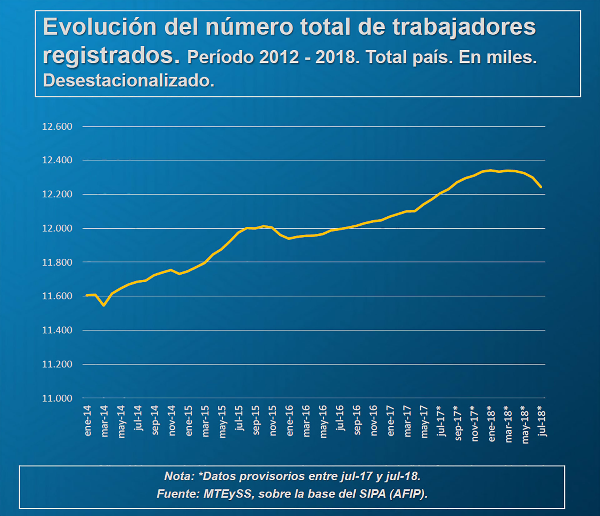 La crisis que arrastra la economía argentina desde el inicio del segundo trimestre, y que se habría acentuado en el tercero, de acuerdo con datos parciales del sector manufacturero y también del comercio minorista, se reflejó con nitidez en el informe mensual del empleo registrado de la Secretaría de Trabajo y Empleo, ahora dependiente del Ministerio de Producción y Trabajo que encabeza el economista Dante Sica.