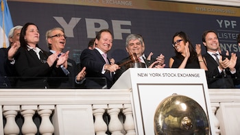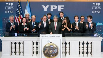 NUEVA YORK.- En lo que aquí se conoce como investor´s day, el encuentro de ayer al mediodía de la plana mayor de YPF con los accionistas de la petrolera tuvo un condimento poco usual. La mayor empresa argentina cumplió 25 años desde su irrupción pública en la New York Stock Exchange (NYSE) y la meca bursátil, engalanada en su fachada con la marca de la energética, lo celebró a lo Wall Street: horas después del intercambio entre los directivos y los tenedores del 90% de las acciones de YPF, en el que se presentó el plan estratégico a cinco años de la petrolera (2019-2013), la NYSE invitó a Miguel Gutiérrez, presidente de YPF, y a su CEO, Daniel González, a cerrar la jornada bursátil con el tradicional toque de campana.