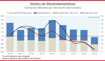"De manera adicional, tras el salto cambiario, los electrodomésticos y artículos del hogar se encarecieron respecto al resto de bienes de la economía: en el bimestre septiembre-octubre el Nivel General de Precios creció 12,7%, mientras que los precios del rubro lo hicieron 24%", añadió Ecolatina.