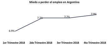 Sobre estos resultados, Andrea Ávila, CEO de Randstad para Argentina y Uruguay, sostuvo que "en situaciones de cierta incertidumbre como la actual, es de esperar que los trabajadores tengan menor confianza y muestren actitudes más conservadoras en sus decisiones de carrera laboral. Una baja en la confianza en el mercado laboral como la que relevamos en este último trimestre hace que haya menos trabajadores en búsqueda activa de un cambio de trabajo, dando como resultado una baja movilidad laboral".Acompañando un contexto en el que la economía no se recompone y el mercado laboral no muestra señales de reactivación, el deterioro de la confianza de los trabajadores también tiene su correlato en un incremento del miedo a perder el empleo, que en el último trimestre del año se situó en el 7,9%, con suba de 1 punto porcentual por sobre los valores de principio de año (6,7%).