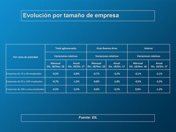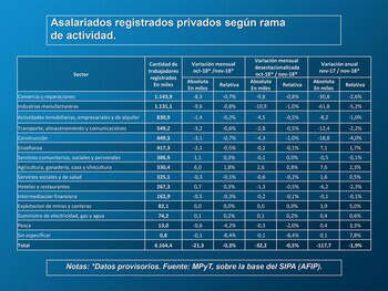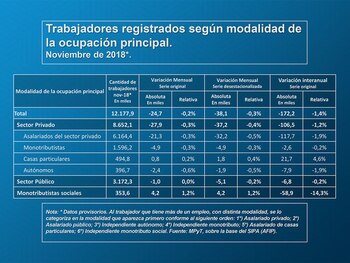 El informe de marras reveló que en comparación con el nivel de empleo de octubre se detectó una disminución de 38 mil trabajadores, un 0,3%, en valores ajustados por estacionalidad.