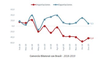 Por segundo mes consecutivo, y producto -otra vez- de una fuerte contracción de las importaciones, la Argentina logró un saldo comercial favorable con Brasil en enero, de acuerdo con los datos publicados esta tarde por el Ministerio de Desarrollo del vecino país. El superávit fue de USD 114 millones, cuando en enero del 2018 el resultado había sido deficitario en USD 478 millones.