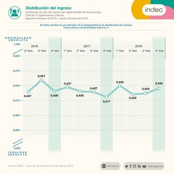 Así el coeficiente de Gini, que se acerca a 1 para mostrar la mayor desigualdad, se amplió a 0,434 a fines de 2018 (por encima del 0,417 de fines de 2017).