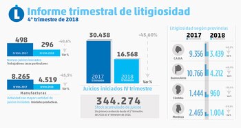 El informe revela que además del descenso del 39,6% en la cantidad de juicios iniciados en 2018 por los trabajadores de unidades productivas respecto a 2017, se registró una disminución en los iniciados por trabajadores de casas particulares.