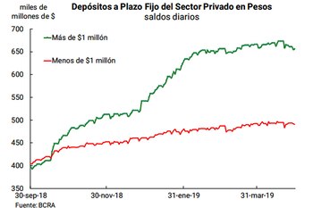 Los plazos fijos del sector privado ascendían a fines de abril a unos 1.415.000 millones de pesos ($1,4 billón), un monto similar al de la Base Monetaria.