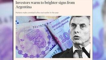 En una nota titulada "Los inversores se entusiasman con las señales de la Argentina", la publicación destacó que los mercados están regresando "después de la derrota a principios de año". El artículo cita algunas fuentes —como Goldman Sachs— que aseguran que la inflación se está desacelerando y que puede caer en 20 puntos porcentuales para fin de año.