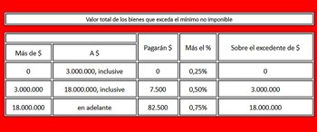 Además, se aplicará la nueva escala con alícuotas progresivas sobre el total de los bienes que excedan el mínimo no imponible del 2019.