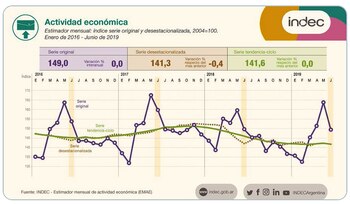 El Indec añadió que el EMAE acumuló una caída de 2,6% en el primer semestre del 2019.