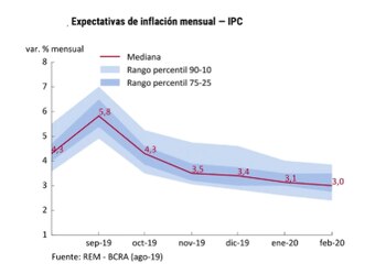 Luego de la devaluación de agosto, los participantes del REM estiman que la inflación del 2019 llegará al 55% (15 puntos porcentuales más con respecto del relevamiento previo).