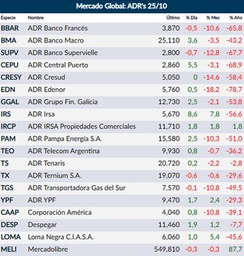 Esta diferencia se pudo apreciar en la evolución de los ADR de compañías argentinas que se negocian en dólares en las bolsas de Nueva York.
