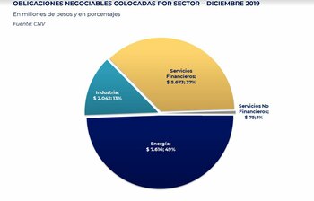 Se emitieron 22 obligaciones negociables por $15.411 millones (46% del financiamiento total), entre ellas las emisiones las petroleras, YPF por $4.022 millones y Pan American Energy, por $2.743 millones.