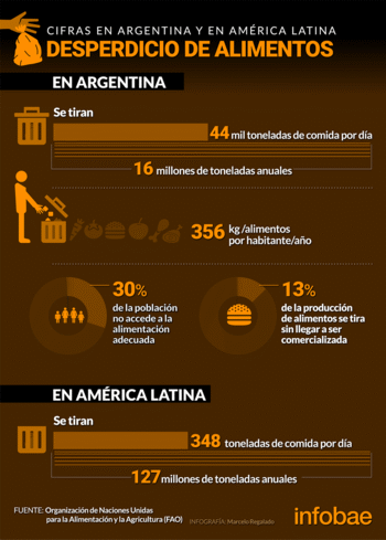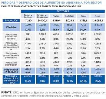 El estudio revela que la pérdida y desperdicios de alimentos básicos se ubica en el rango de 12,5% de la producción de un año del conjunto de carnes, lácteos, cereales y oleaginosas, frutas, hortalizas y papas, poco más de 16 millones de toneladas, equivalentes a poco más de 355 por habitante, prácticamente un kilo de alimento de persona por día, en un momento en que la pobreza afecta largamente a más de 33% de los habitantes; y la indigencia, limitaciones severas de acceso a los productos básicos con los ingresos que generan, a 1 de cada 12 residentes; y el Gobierno ahora busca reducir con la entrega de la Tarjeta Alimentaria.