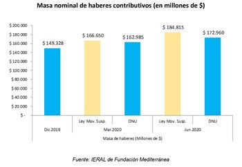 De ahí que la mitad del ahorro que el Gobierno nacional lograría con la interrupción de la aplicación de la Ley de Movilidad Jubilatoria, estimado en 0,4% del PBI por los economistas de Ieral de la Fundación Mediterránea, se destinaría a sostener el crecimiento real de los ingresos del conjunto de los trabajadores en el sector público nacional, mientras los del sector privado comenzaron a registrar disminuciones en términos reales, por efecto de las suspensiones y recorte de la jornada laboral que impuso el Aislamiento Social Preventivo y Obligatorio.