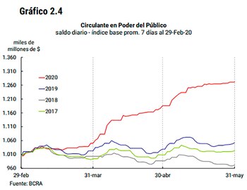 Desde el comienzo del año, el Banco Central ya emitió un billón de pesos. Solamente en mayo, las transferencias al Tesoro alcanzaron los $430.000 millones. Y si bien durante el mes se aceleraron los procedimientos de esterilización, parte de esos pesos deben quedar depositados para evitar desbalances en el plano monetario. Por eso se busca evitar su dolarización. Un aluvión tan fuerte como el de los pesos emitidos, fue el de las regulaciones cambiarias.