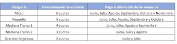 La propuesta podría consistir en establecer el pago fraccionado en función del tamaño de las empresas, definido conforme los siguientes parámetros de ventas totales anuales establecidos por la Resolución (SEPYME) 220/2019 que fuera modificada por la Resolución (SEPYME) 563/2019: