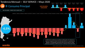 Su informe de la evolución de ventas de mayo marcó un retroceso interanual de 0,5%, luego del incremento de 16,2% y de 4,1% de marzo y abril, respectivamente. Los rubros que impulsaron el índice a la baja el mes pasado fueron los productos denominados “impulsivos”, que tuvieron una caída en la demanda del 15,6%, y las bebidas sin alcohol, que registraron una contracción del 11,2% respecto de mayo del 2019.