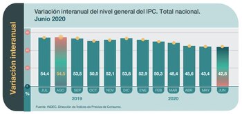 Según el economista Nadin Argañaraz, del Ieral, las tasas de inflación de 2020, más bajas que las de 2019, están contribuyendo a una baja de la inflación interanual. Sin embargo, junio puede haber sido el último mes de baja de la inflación interanual: si la inflación en julio supera el 2,3% tendremos una variación interanual mayor que la de junio”.