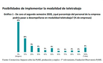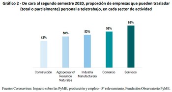 - Solamente el 6% de estas empresas está en condiciones de articular el teletrabajo para todo su personal. Ese universo abarca unas 60.000 firmas y 220.000 empleos.