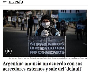 El País de España tituló que “Argentina anuncia un acuerdo sobre la deuda con sus principales acreedores”.