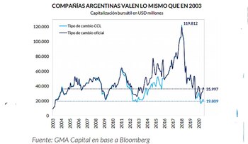 GMA Capital advirtió que la Argentina tiene “un mercado de capitales muy poco desarrollado respecto del resto de la región, con valuaciones de empresas castigadas y con pocos participantes”. Consideró que “la reestructuración de la deuda es una oportunidad para romper la histórica inercia. Sin embargo, la situación de menor incertidumbre ante un default es solo una condición necesaria que requiere el auxilio de arreglos a nivel macroeconómico e institucional”.