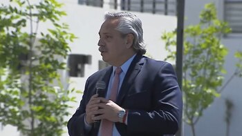 Del acto también participa el gobernador de la provincia de Buenos Aires, Axel Kicillof, quien estuvo dos semanas aislado por un contacto estrecho.