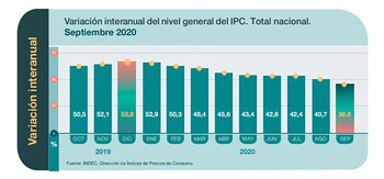 El Instituto Nacional de Estadística y Censos (Indec) informó este miércoles que la inflación llegó al 2,8% por ciento en septiembre y al 36,6% en el último año.